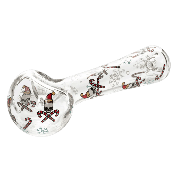 4.5" Skull and Crosscanes Spoon Hand Pipe Red Eye Glass